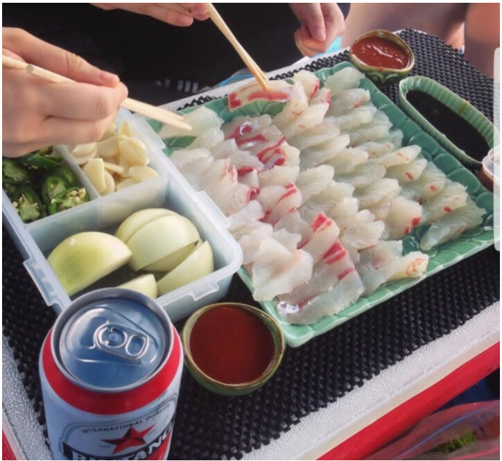 바다에서 작살로 찌른 고기를 배 위에서 바로 회로 드시는 회크루즈 한번 해보시지 않겠습니까?