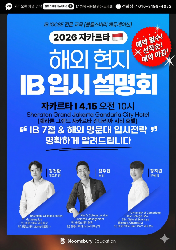 [입시설명회] IB 전문학원 자카르타에서 국제학교학부모님들… 댓글1개