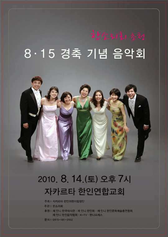 오는 8월 14일 자카르타 한인 연합교회 갈릴리홀에서 한소리회를 초청하여 아름다운 음악회를 가집니다...