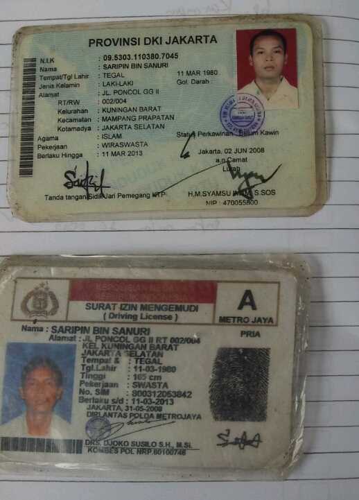 끄망, 세노파띠, 폰돈인다 등.. 전 자카르타 슬라딴 근처에서 기사 채용시 Saripin 이라는 위에놈