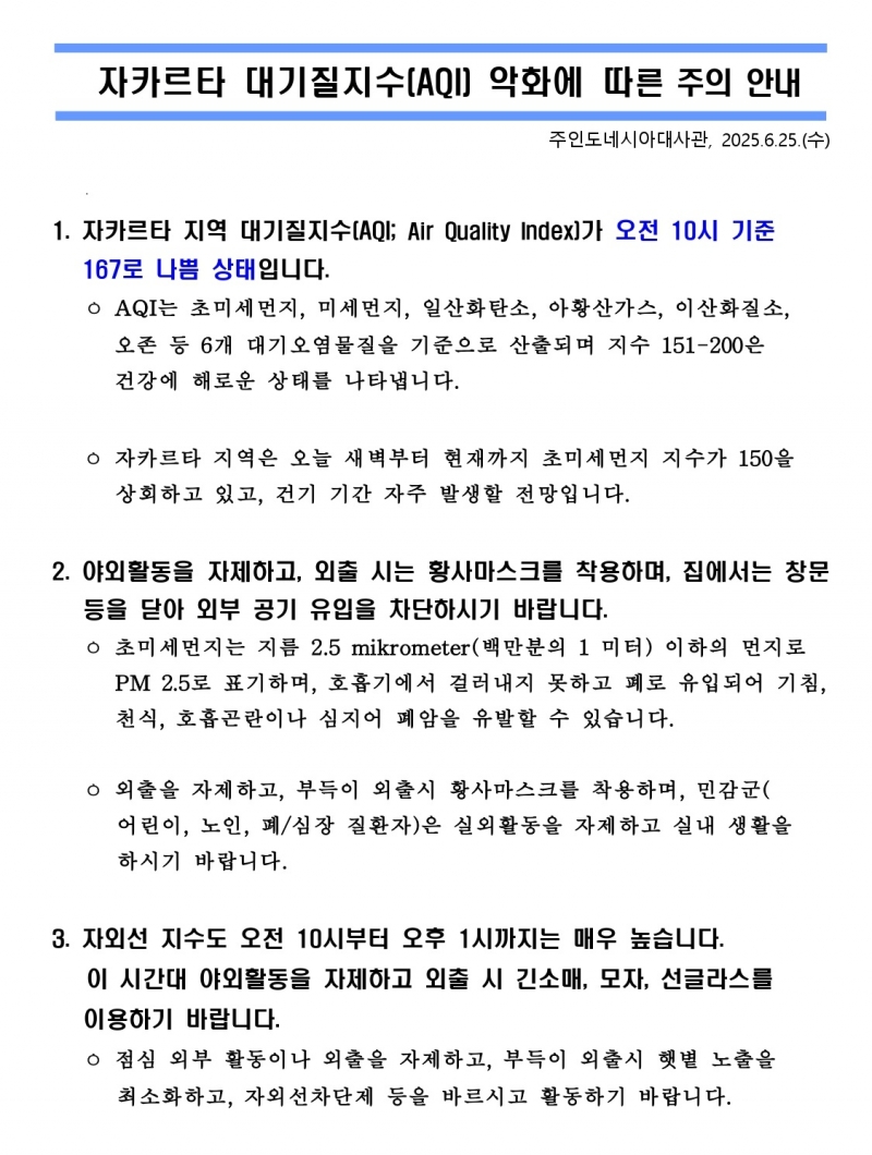 도착비자 등 인도네시아 체류시 유의사항 안내