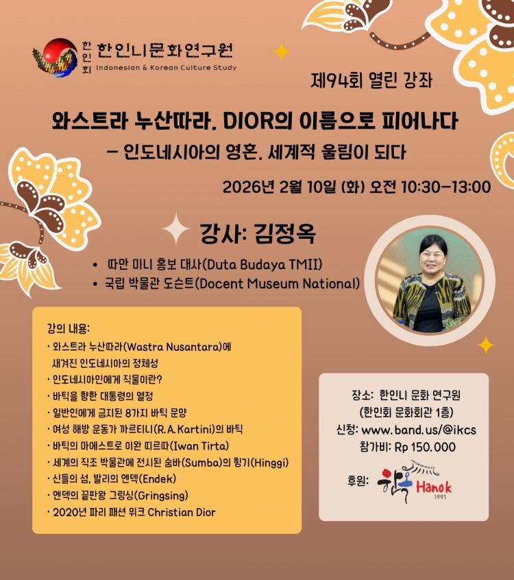 문화연구원(IKCS) | 2월 10일, 94회 열린강좌 <와스트라 누산따라, DIOR의 이름으로 피어나다> - 인도네시아의 영혼, 세계적 울…