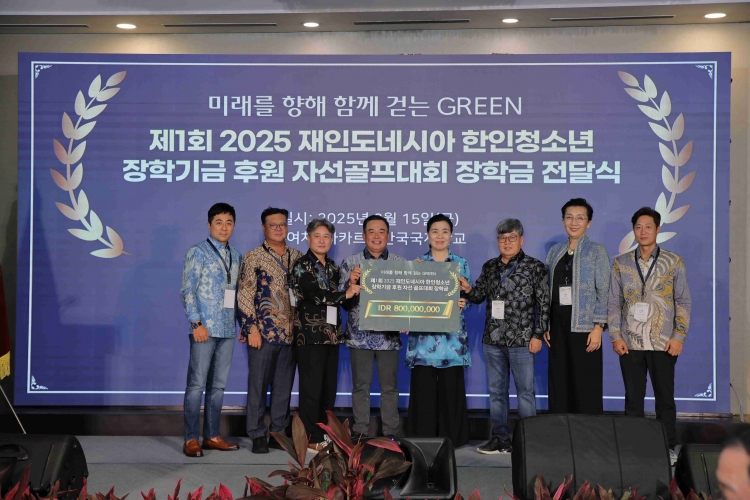 재인도네시아한인회(회장 김종헌)는 지난 8월 15일 자카르타 Damai Indah Golf (PIK Course)에서 ‘제1회 2025 재인도네시아 한인청소년 장학기금 후원 자선 골프대회’를 성황리에 개최했다. 한인사회 주요 인사와 한인 약 150여 명이 함께한 이번 대회를 통해 조성된 장학기금은 총 14억8천2백50만 루피아(약 9만6천 달러)에 달하며, 이중 8억 루피아(약 5만2천 달러)가 저녁 만찬에서 자카르타한국국제학교 김경국 이사장과 이선아 교장에게 전달됐다. 해당 기금은 인도네시아 내 한인 청소년들의 학업 지원과 장학사업에 전액 사용될 예정이다.