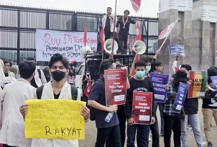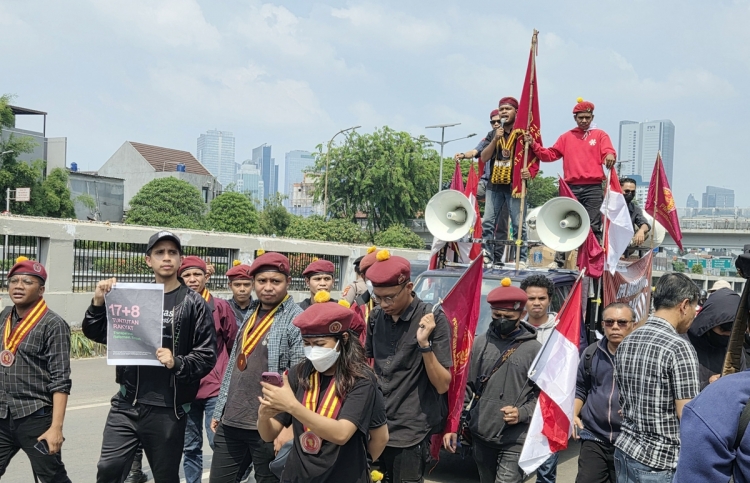 인도네시아 민족학생운동(GMNI) 소속 학생 등 500명은 "최고 권력은 국민 손에 있다"고 쓴 손팻말을 들고 트럭 주변에서 같이 목소리를 높였다.