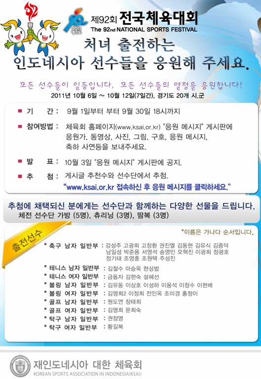 제92회 전국체육대회 응원 메시지 이벤트. 댓글 3 개