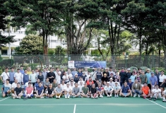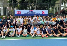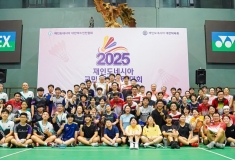 베트남 나짱의 새벽동이 트는 해변에서 단체 운동하는 베트남사람들