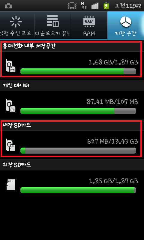 갤럭시S 메모리 관련 도움 요청드립니다ㅠㅠ