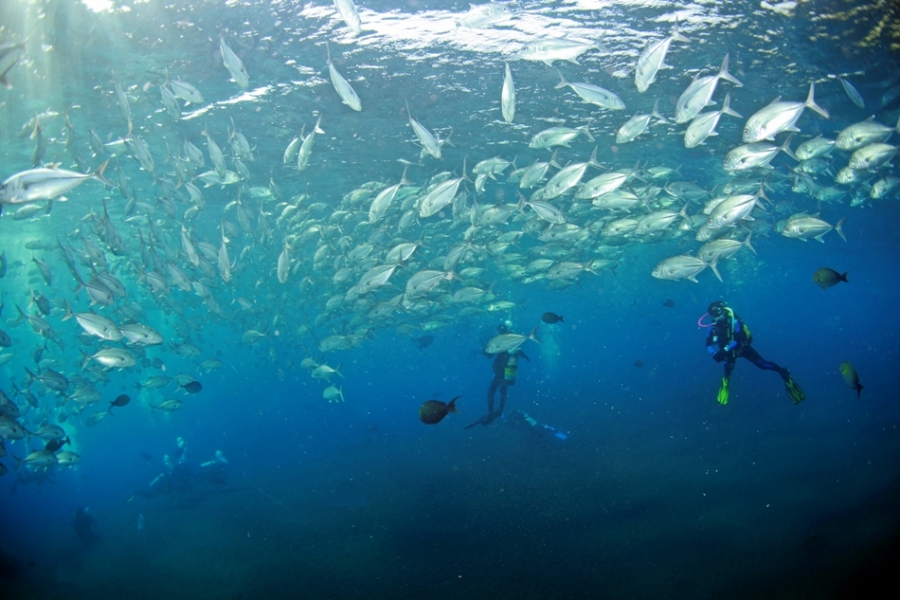 Jak Fish 라는 고기때 입니다 이넘들은 몰려 다니며 사람이 접근을 하면 둘러싸는 재미있는 행동을 하지요