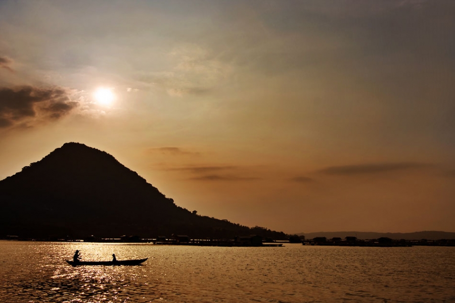 저녁놀에 배 타고 있는 두사람 그림..참 좋네요.