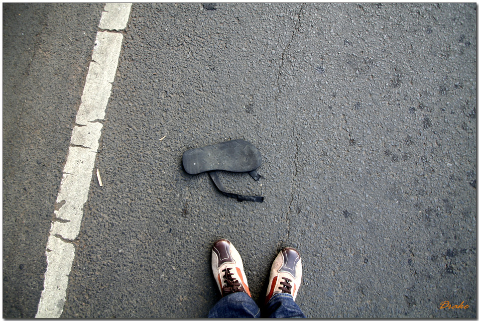 아직 살아서 나의 발에 신겨져 있는 발과, 죽어 버려진 신발 사진도 올립니다.