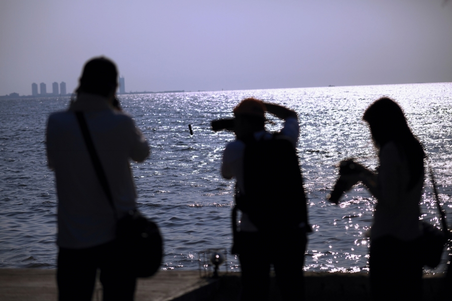 바다를 배경으로 흔들리는 사람들.....