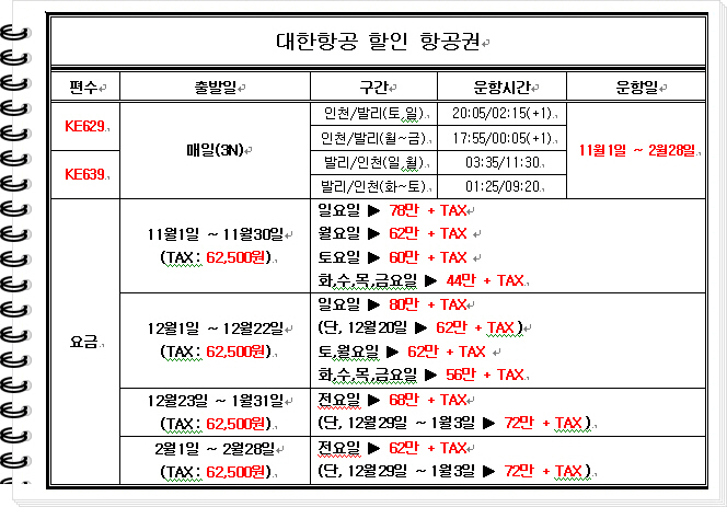 대한항공 자카르타,발리 ~12/22일까지 7일 항공권 댓글1개