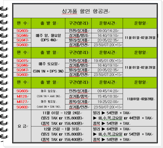 SQ,CX,MH 10월~12월 자카르타,수라,발리 댓글2개