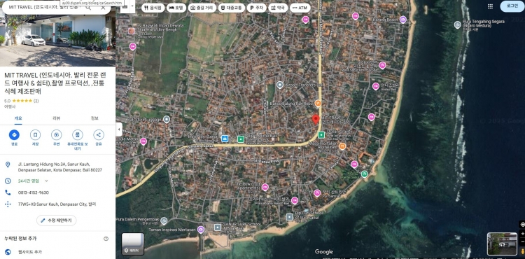 주소는 발리 사누르이며 큰 길가에 위치한 강남 레스토랑과 비빔밥 사누르 레스토랑 중간 위치의 큰길에서 10미터 정도 들어간 길에 위치합니다.