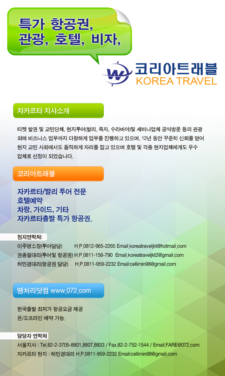 * 예약 / 광고 문의 : 0811.888.9609 & ad@indoweb.org