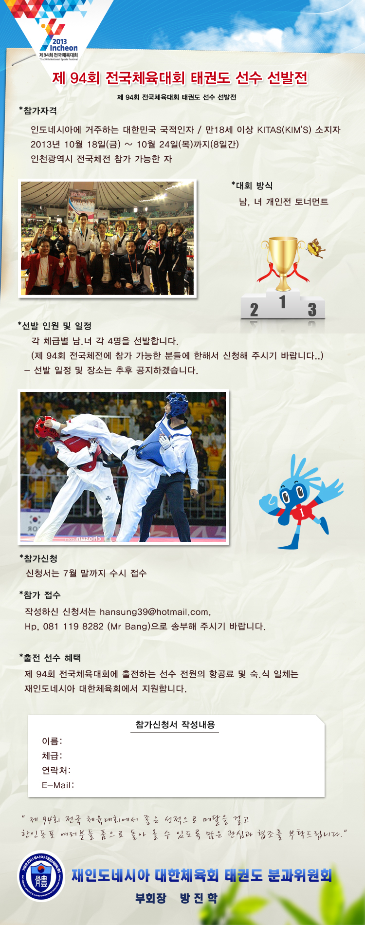 [포토스] 디자인 > 대한체육회 태권도 출전 남.녀 선수모집