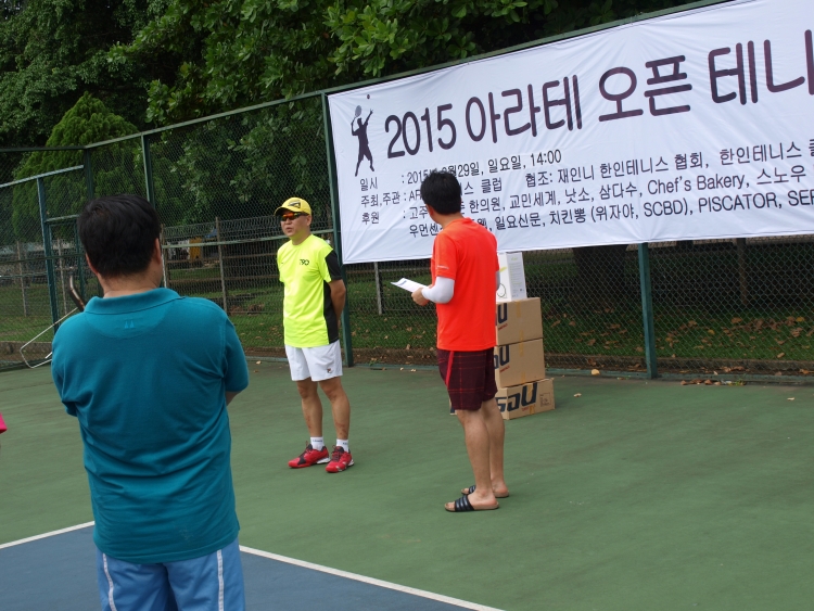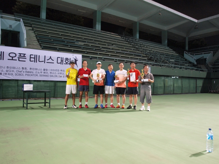이날 대회는 복식경기로만 진행이 되었는데 실력에 따라 마스터부와 첼린져부로 나누어서 진행이되었다. 예선전이 끝난 후 준결승전 부터는국제경기가 열리는 센터코트에서 게임이 진행되었는데 관람석에 앉아서 주최측에서 제공된 도시락을 막으며 관람할 수 있어서 더욱 즐거운 모습이었다. 마스터부는 아라테 테니스 클럽 소속의 강희택 이규백 조가 우승을 하였고 첼린져부는 아마르따뿌라 테니스 클럽 소속의 정문섭 권준구 조가 우승을 하였다.