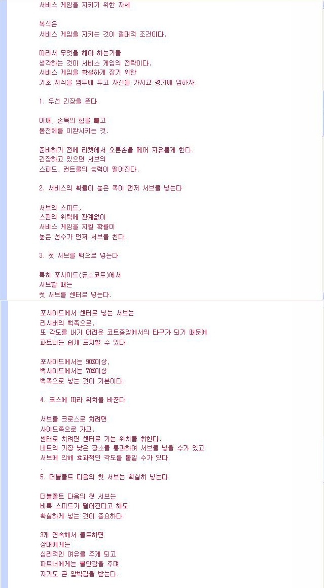 복식은 서비스 게임을 지키는 것이 절대적 조건이다.