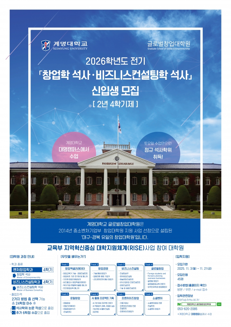2026년 전기 계명대학교 글로벌창업대학원 석사 과정 입학 안내