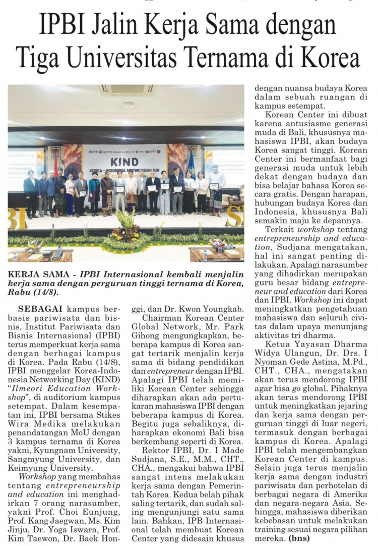 K.I.N.D 2024 - Education and Entrepreneurship 2024 was held in Triatma Mulia University, Bali International University, IPB Internasional dan Primakara University, Bali, Indonesia from August 12th to 16th and was a great success. We look forward to continuing to engage with the universities that participated. The 12-member Korean team also visited the Bali Consulate Office of the Korean Embassy in Indonesia and the BRIDA Bali provincial government.
