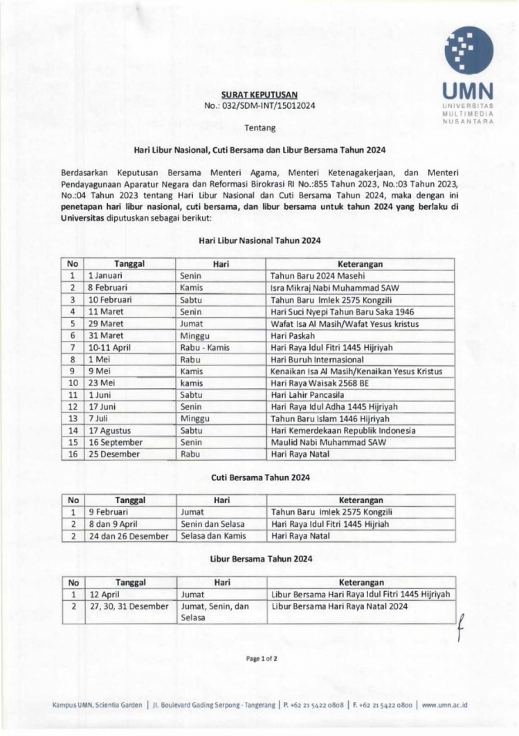 참고) 빨간 공휴일만 휴강이고 cuti bersama는 휴강하지 않습니다.