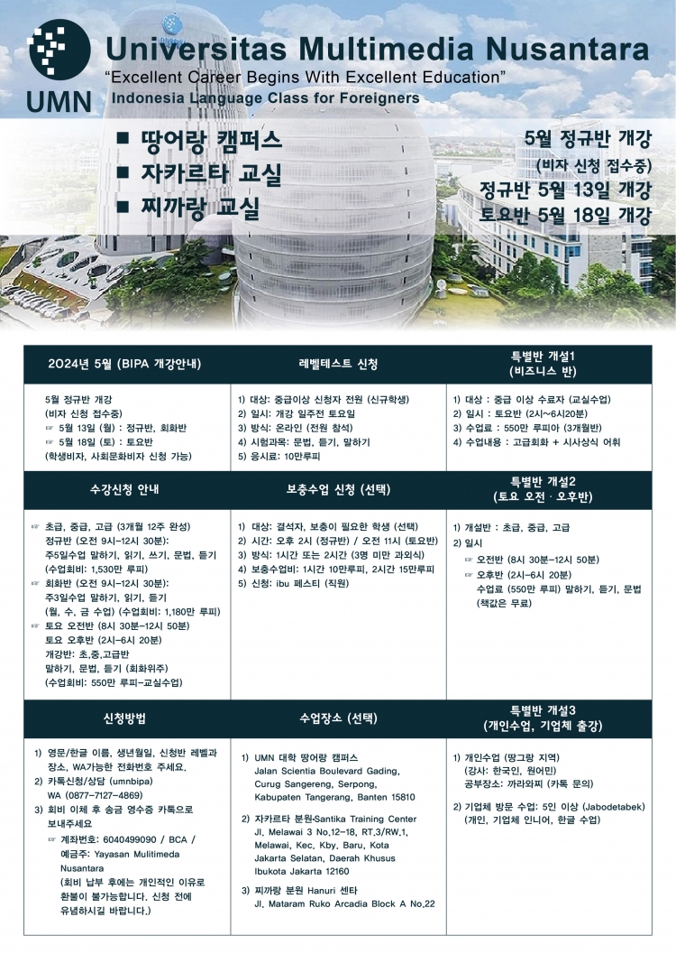 UMN대학 인니어 9월 수업 개강 (3개월 특별반)