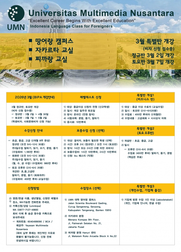 UMN대학 인니어 2026년 3월 수업 개강