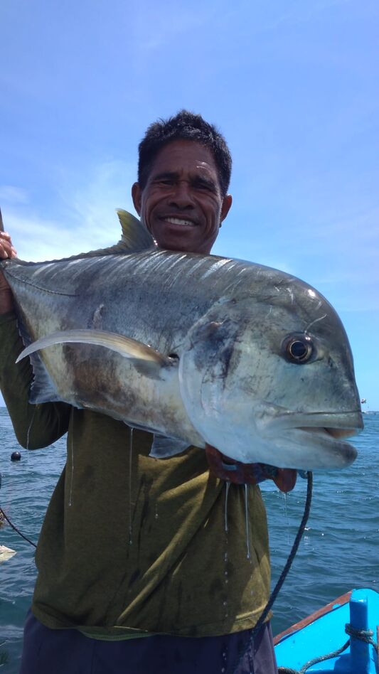 며칠전 저의 용병과 함께 나가 잡은 GT(giant trevally)입니다.