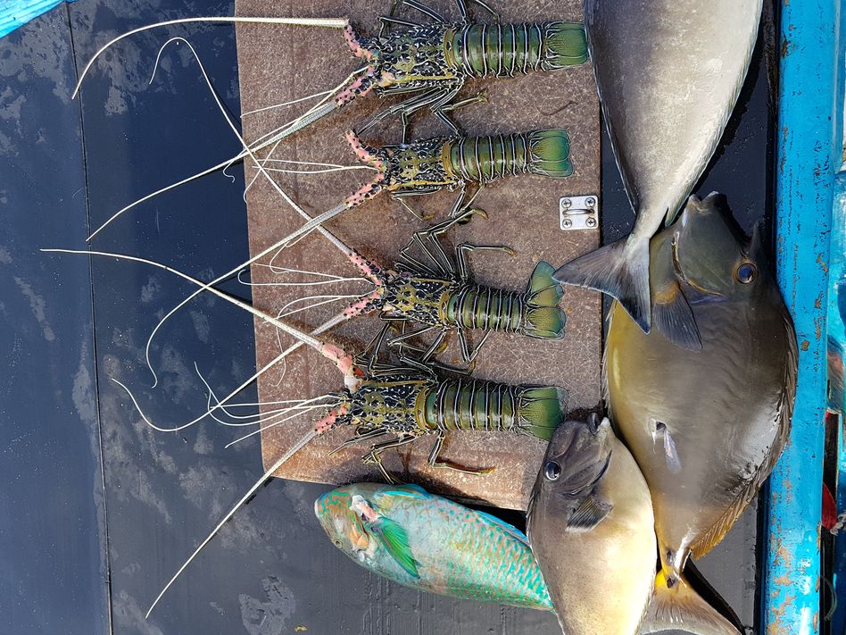 스페로가 스피어건으로 횟감을 잡는 동안 손님은 배 위에서 바다낚시와 스노클링을 즐길 수 있습니다.