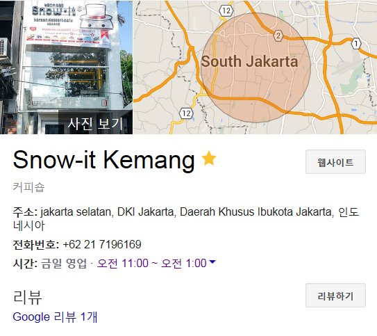 맛있는거먹고파 쪽지보내기 메일보내기 자기소개 아이디로 검색 전체게시물 작성일구글맵에 snow-it kemang 치시면 나와요~~