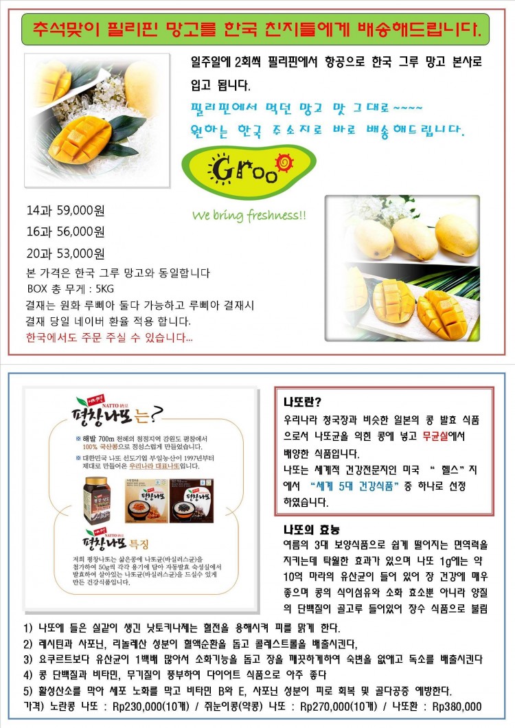 여행/골프/숙박 | 추석맞이 선물용 필리핀 망고 한국 배송 및 선물용 나또 환 인니 배송 안내