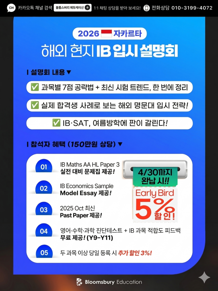 [입시설명회] IB 전문학원 자카르타에서 국제학교학부모님들… 댓글1개
