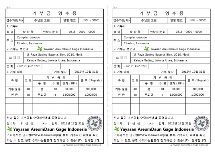 가게로 기부금을 전달하시면, 그 자리에서 기부영수증을 받으실 수