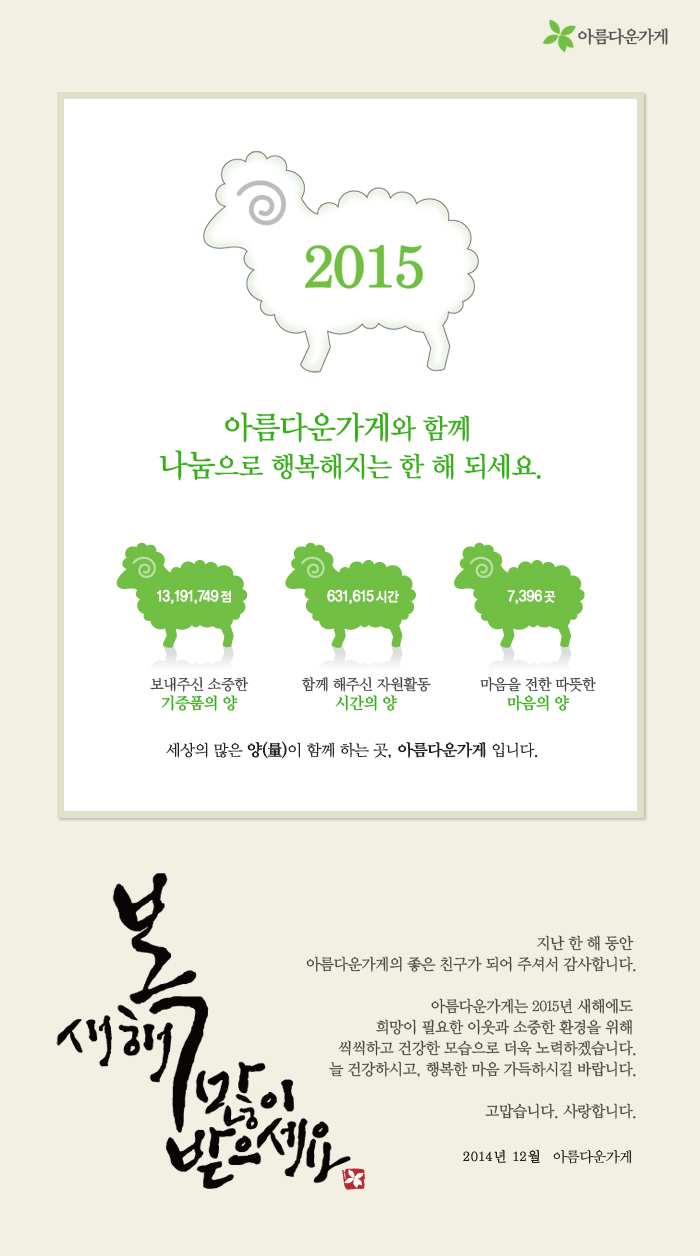 아름다운가게와 함께 나눔으로 행복해지는 한 해 되세요.