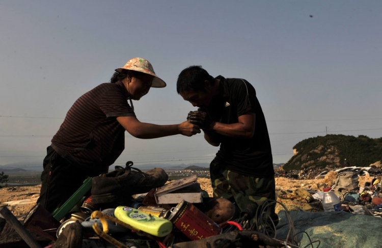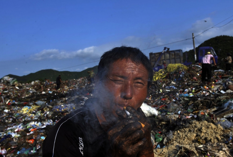 쓰레기 줏는 아쩌씨 마저 아디다스(Adidas) 옷을 입다니??