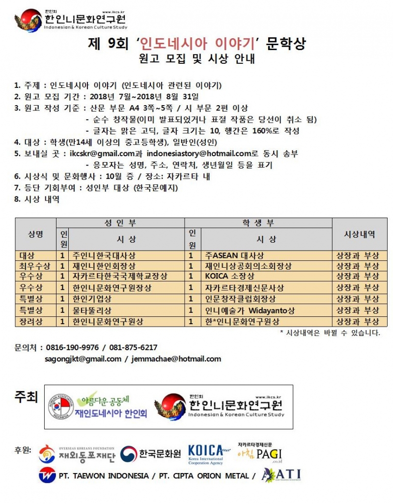 제 9회 ‘인도네시아 이야기’ 문학상 공모