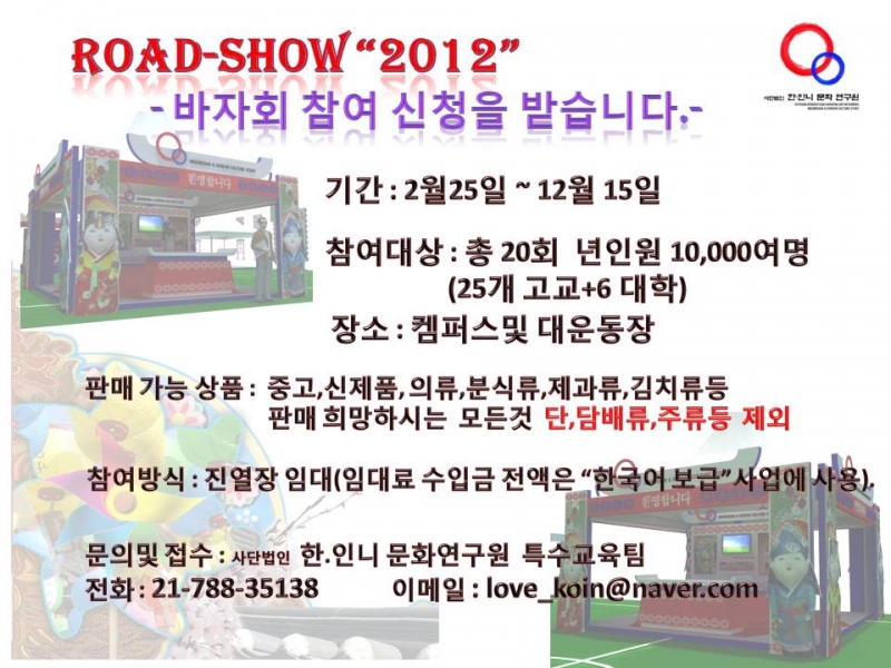 Road-Show "2012" 기간중 바자회 참여신청을 받습…