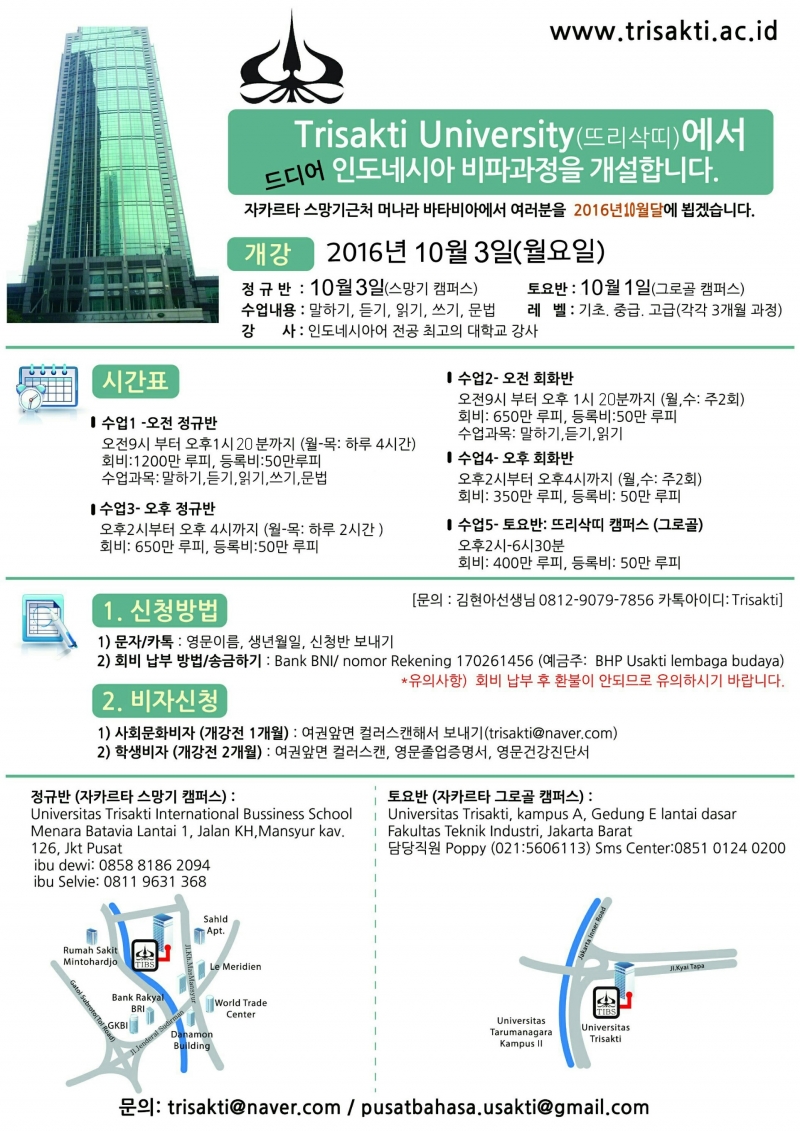 자카르타 명문대학교 뜨리삭띠 대학 비파개강안내입니다 (10월3일… 댓글1개