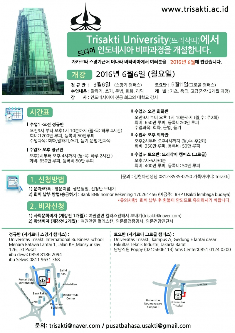 Trisakti대학 BIPA 개강 6월13일 안내~(날짜바뀌었어… 댓글1개