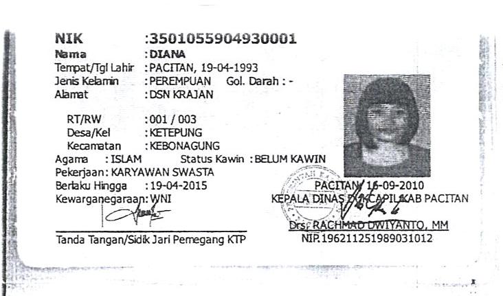 부를땐 dian이라고 불러요. 18살이구요, 지금은 머리가 길어서 KTP와는 약간 다르게 보입니다.