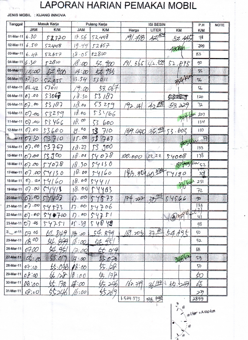 보시는것처럼 이것은 정확한 이노바 연비입니다.... 1liter=8.5km(macet 하루2~3시간식)~10km 장도가 나옵니다..