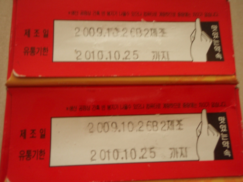 설마 설마 했는데, 상표를 뜯어 보니, 유통 기한이 2010년 10월 25일까지인