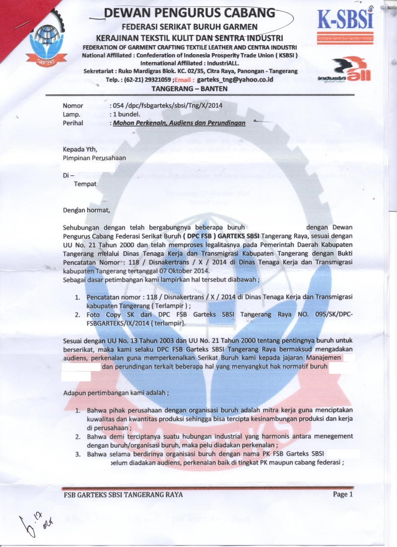 해당 서류는 귀사 사내 노조가 보낸것이 아닌 상부 노조 (DPC K-SBSI)에서 귀사에게 2014년 10월부로 노동부에 사내 노조가 등록되었으니 인사(?) 한번 합시다 하며, 이것저것 귀사의 잘못된 부분들에 대하여 확인하고 싶다는 내용입니다.