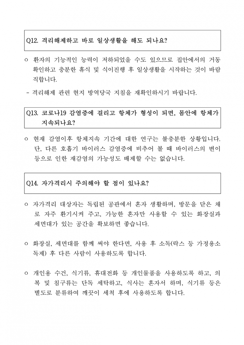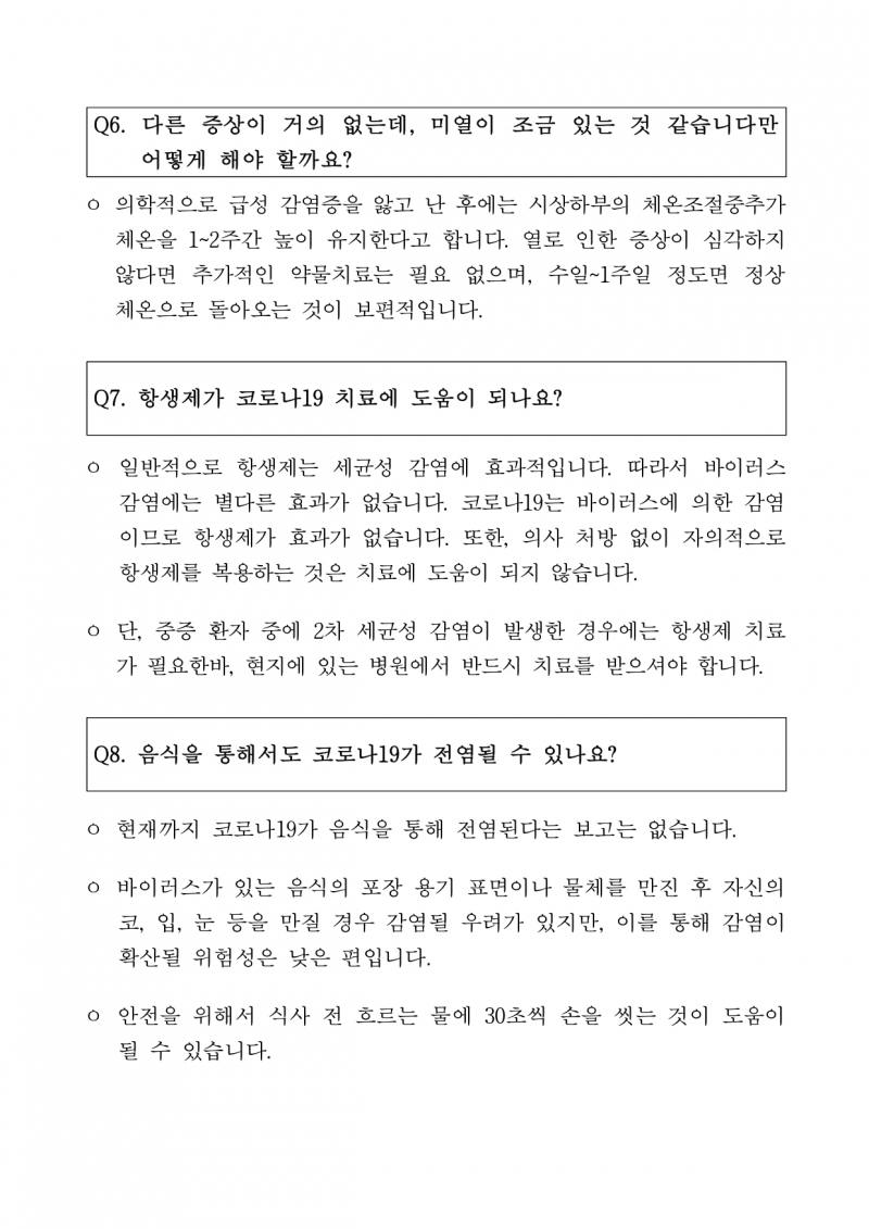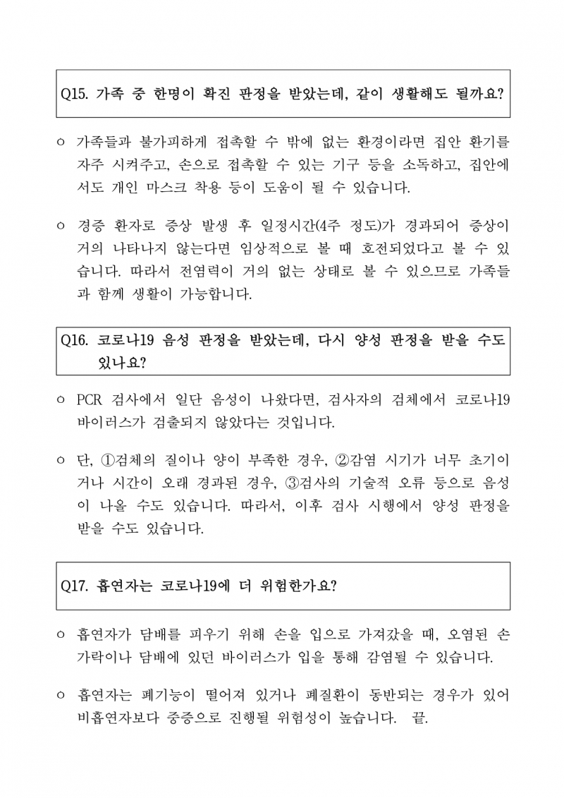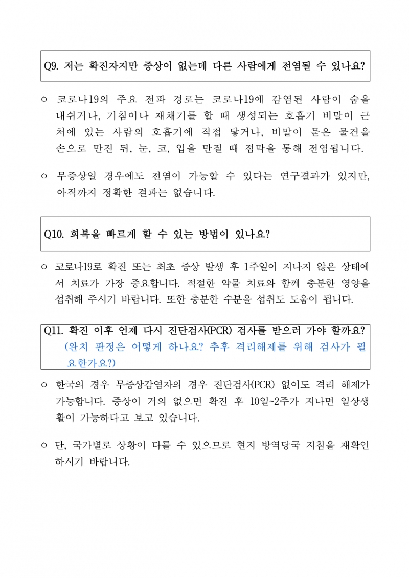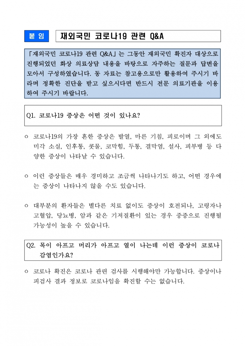 코로나19관련 자주 묻는 질문과 답변