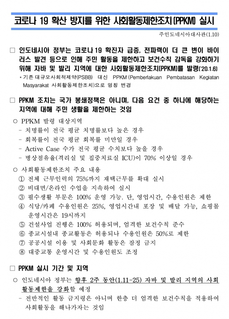 대사관소식 > 코로나 19 확산 방지를 위한 사회활동제한조치(PPKM) 실시