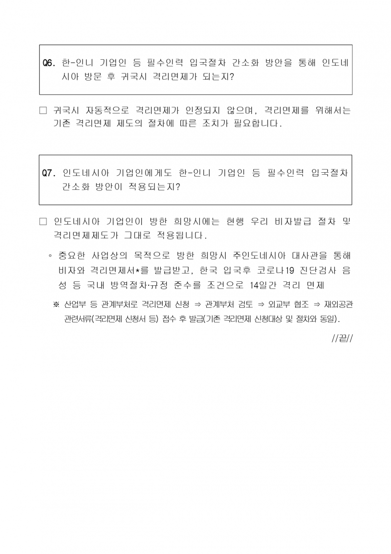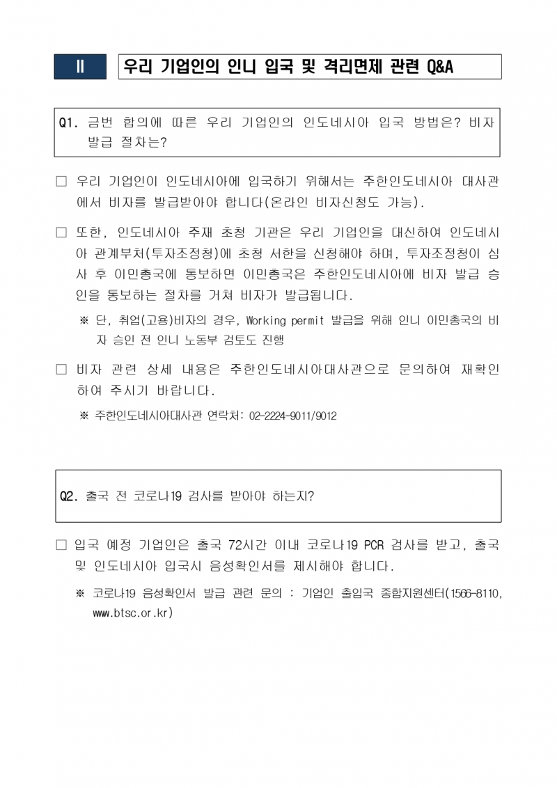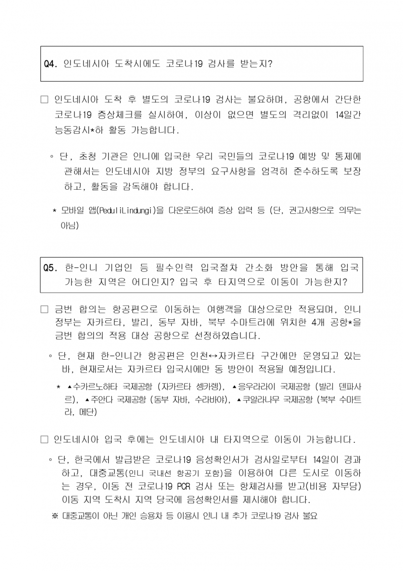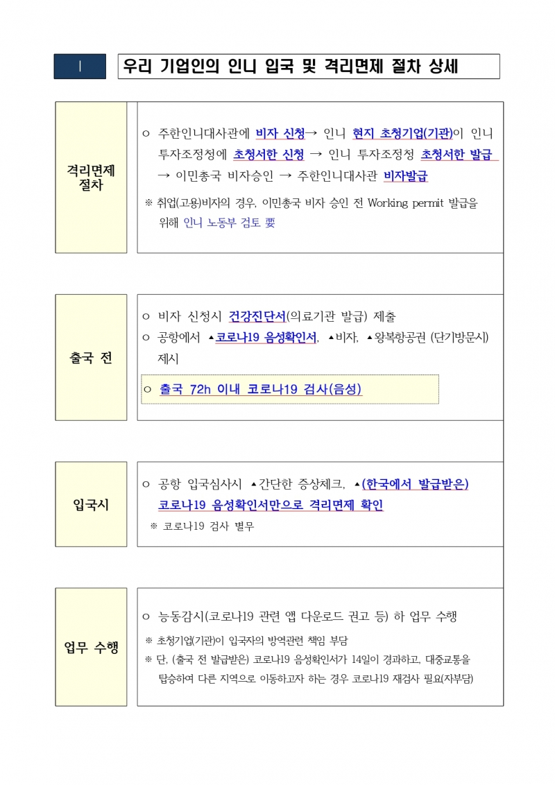 우리 기업인의 인니 입국 및 격리면제 절차 상세