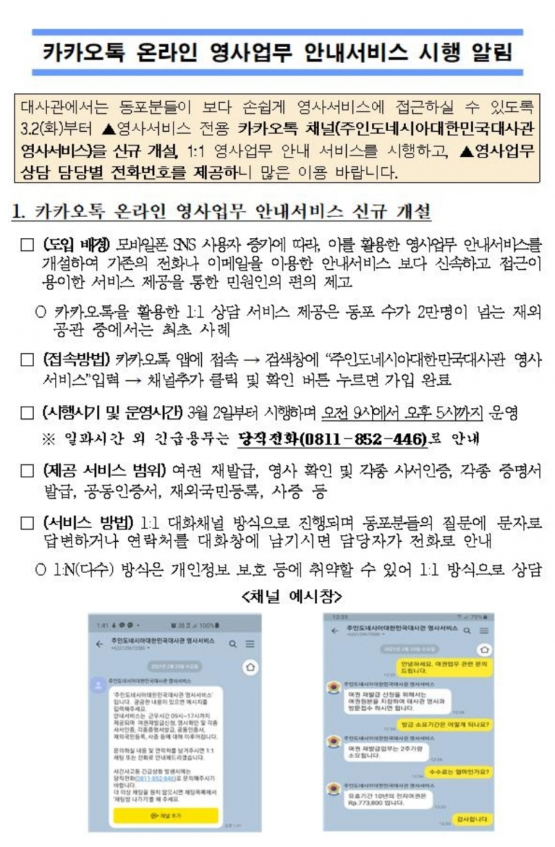 카카오톡 온라인 영사업무 안내서비스 시행 알림
