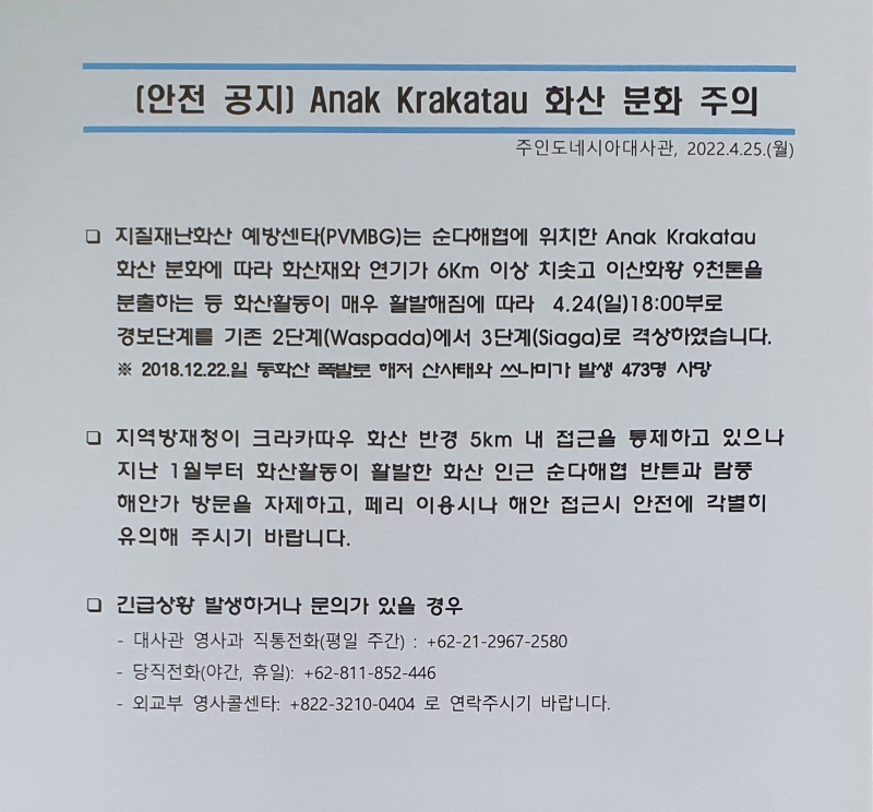 대사관소식 > [안전공지] Anak Krakatau 화산 분화 주의