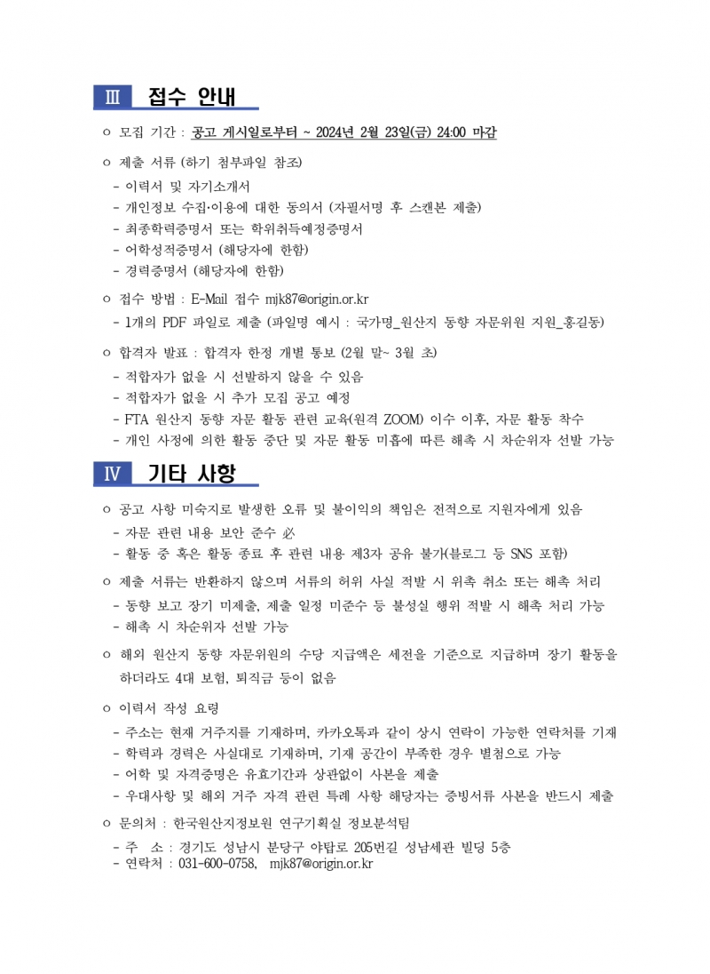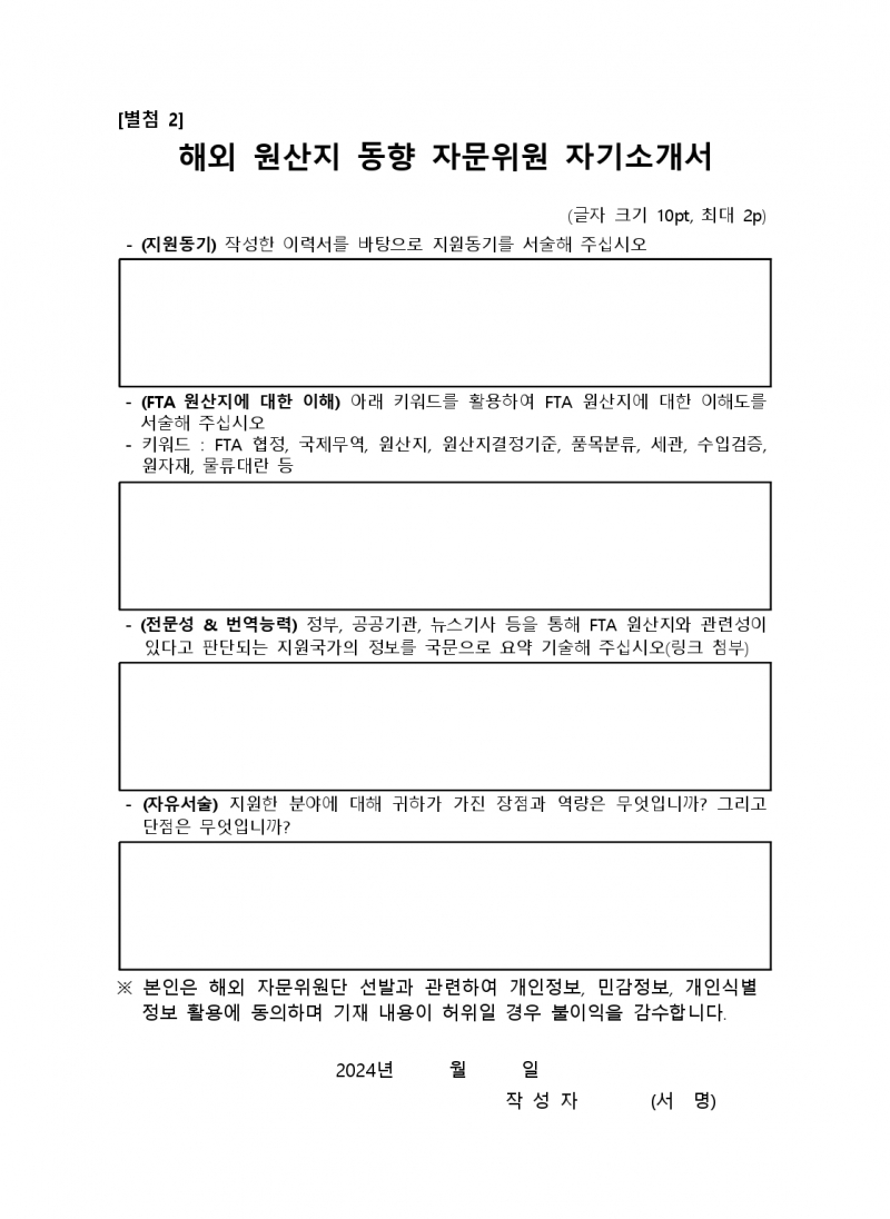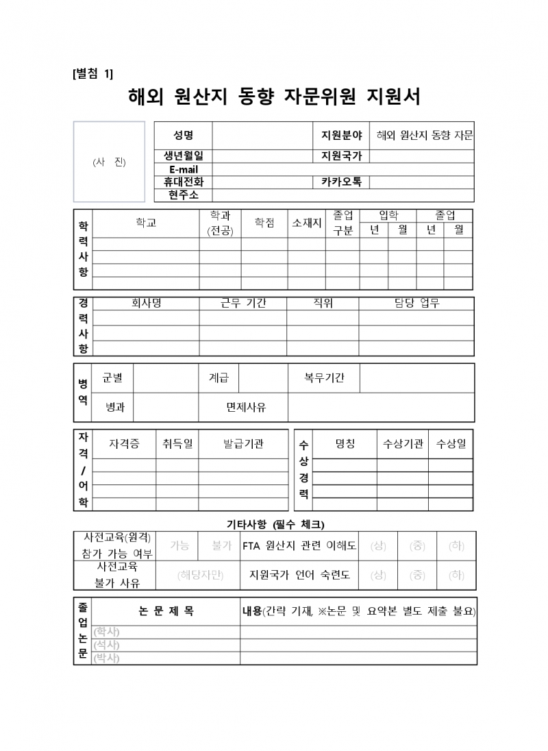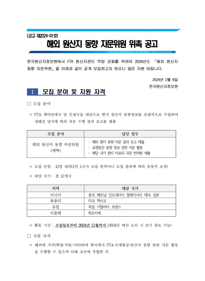해외 원산지 동향 자문위원 위촉 공고 (~2.23(금) 24:00 마감)