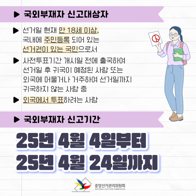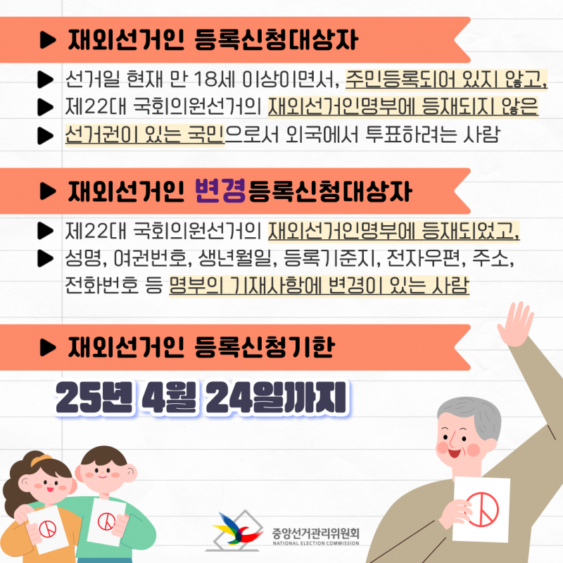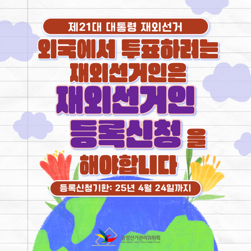 * 투표하려면, 국외부재자/재외선거인 신고.등록신청을 해야합니다.